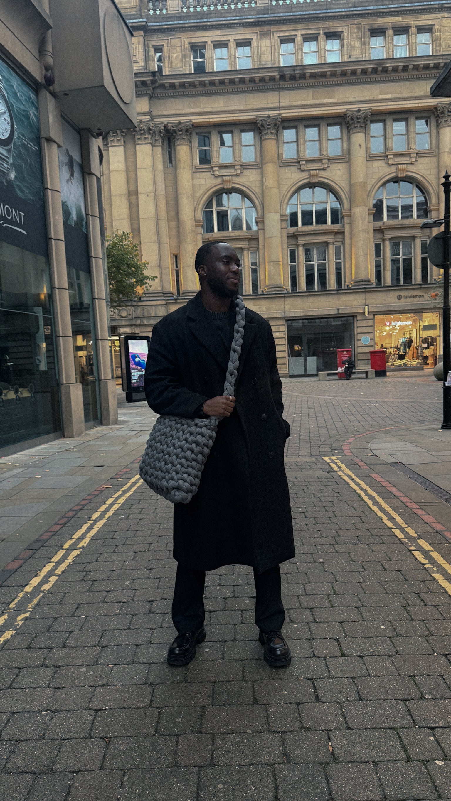 Boldly textured and finely crafted with premium acrylic yarn, the Cove is both elegant and versatile. Wear it on the shoulder or as a crossbody for effortless sophistication
