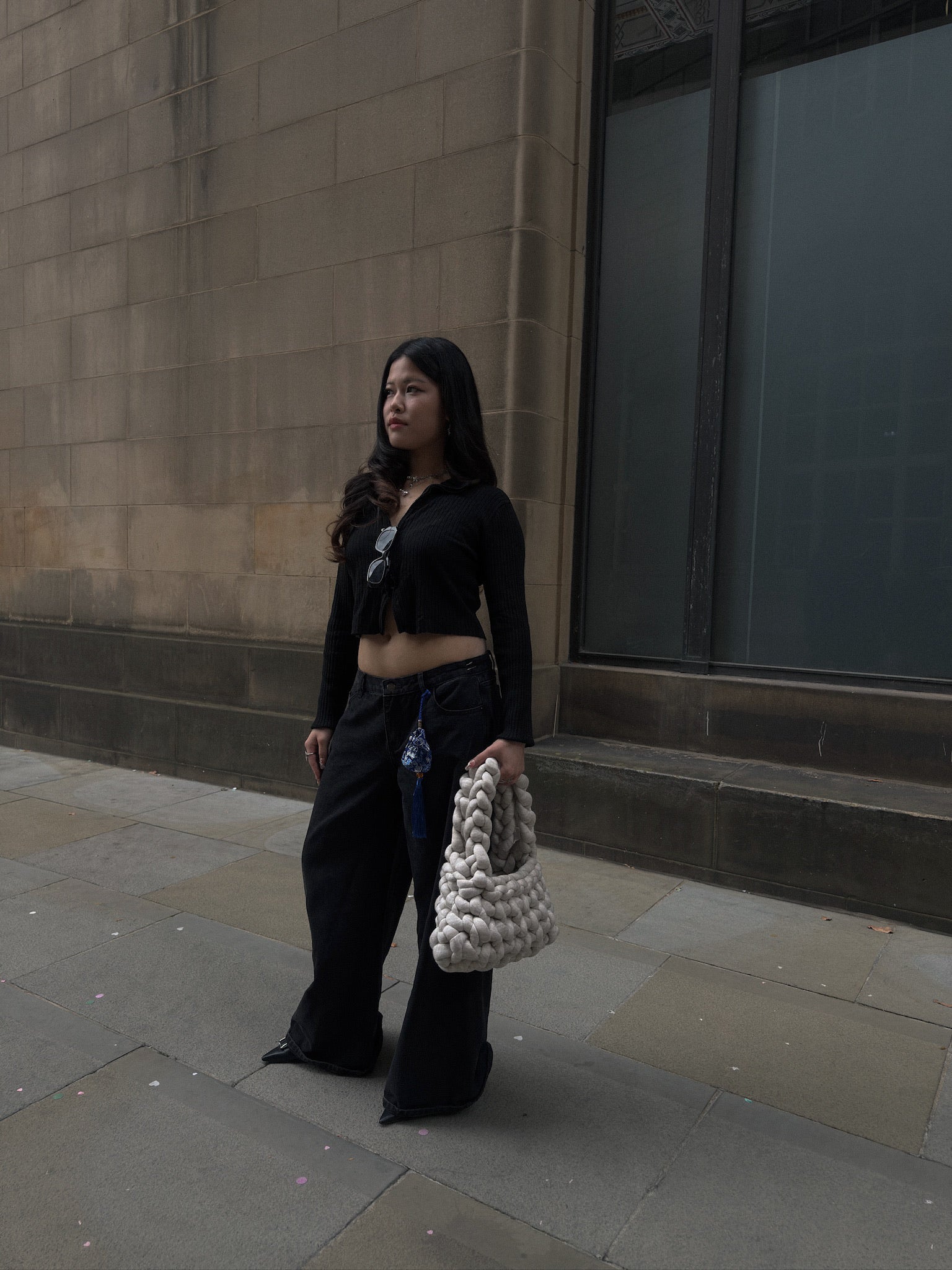 With the finest quality acrylic yarn, the Shiloh Bag is thoughtfully woven into a bold, elegant texture. Its high-quality finish and timeless design makes it a statement of sophistication that exudes quiet luxury